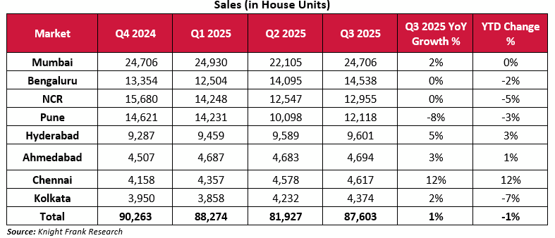 The trend of premiumisation continues to reshape the market, with home buyers demonstrating a strong preference for larger homes, better amenities, and ready-to-move-in or near-completion inventory. While overall sales volume saw stabilisation after previous high-growth phases, the underlying sales value of transactions continued to climb, reinforcing buyer confidence and developer focus on high-ticket launches.