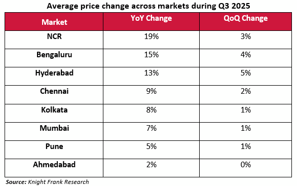 The Delhi-NCR region recorded an impressive 19% year-on-year rise in residential prices — the highest among major Indian cities.
